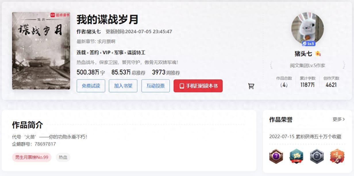 小说发布于2019年1月16日,到现在已经连载了5年半的时间,总字数762万,连载到了3718章。作者现在每天更新4000+的字数,就是不知道什么时候能完结。