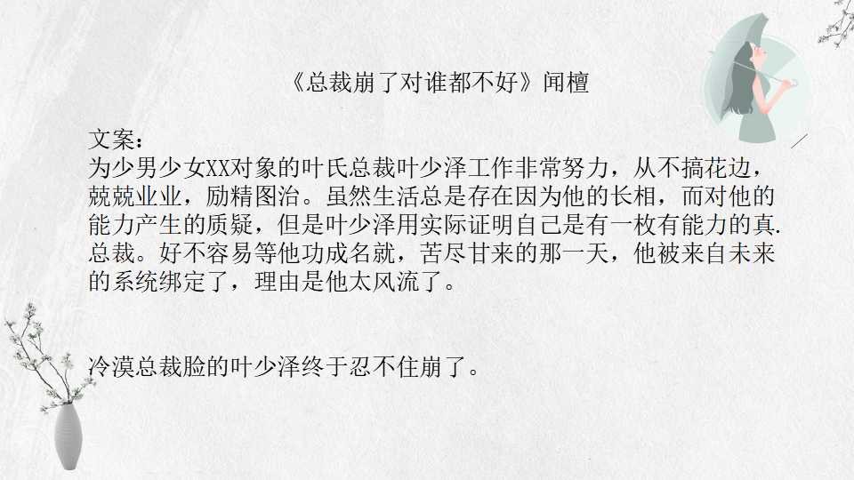 7、 《总裁崩了对谁都不好》闻檀 28万字 非/言情 完结