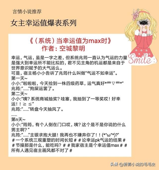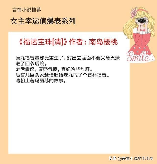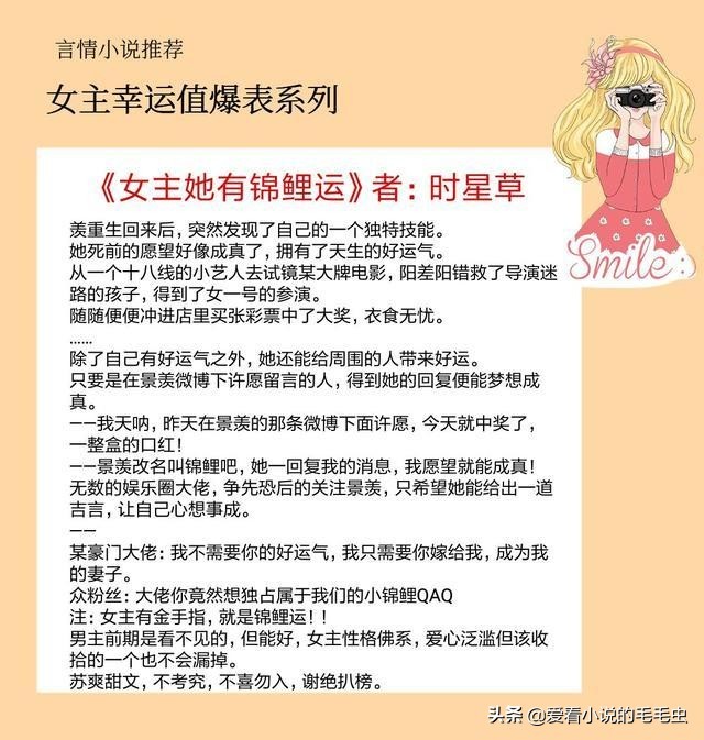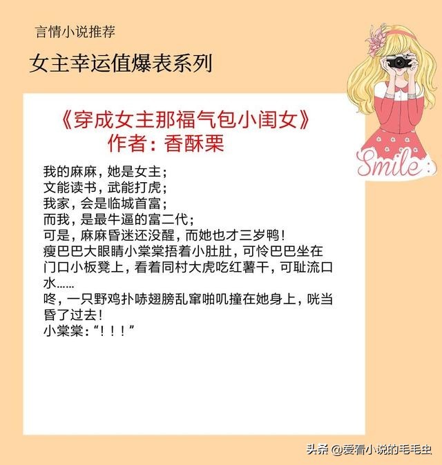 大家好,我是毛毛虫,今天给大家推荐5本女主幸运值爆表的小说,福运逆天全家宠,出嫁老公接着宠!(标题为第四本)