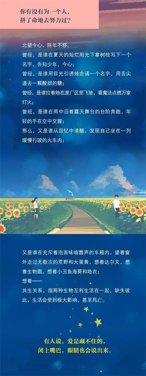我年少时的爱人啊,无论今后我们怎样随着命运的洪流漂泊,怎样的无可奈何,就算所有的东西都与你我站在对立面,我都相信你,嗯,相信你。