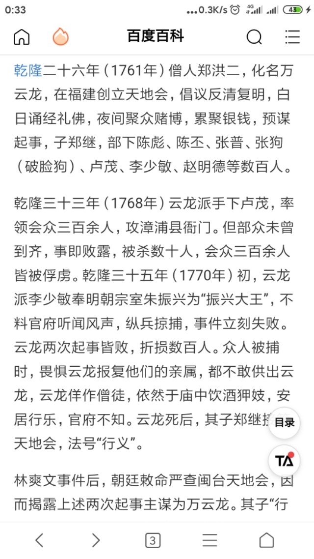 所以金庸先生也算是在填坑,他小说里两会大概的主线便是:天地会在康熙时代被镇压,经过修身养性,改名成红花会,本想通过乾隆干一票大的,不过最终被反水再镇压,只好逃到新疆,与世无争,过些安稳日子!!