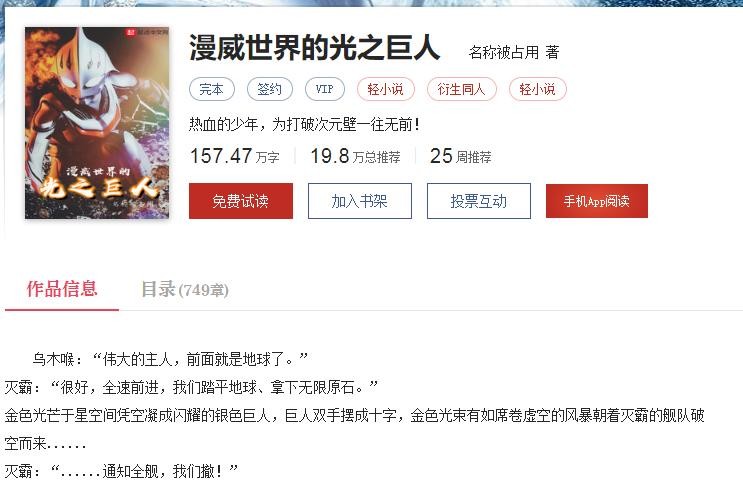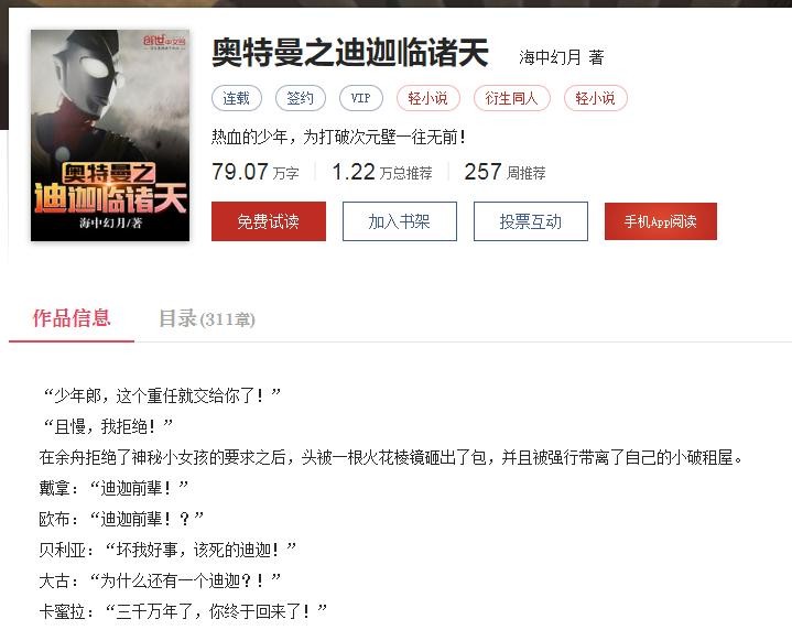 作品信息:雷诺重生为光之国的一名蓝族奥特曼,觉醒了外挂系统。