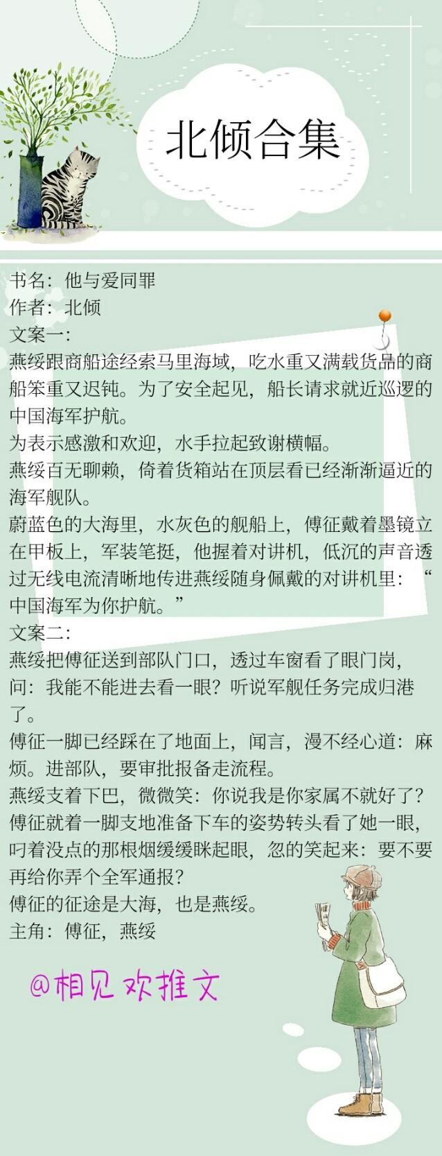 《他与爱同罪》是一本很好看的军旅文,女主是很独立的女孩子,有傅征那样的男人爱她、宠她,真的很幸福,傅征的征途是大海,也是燕绥。