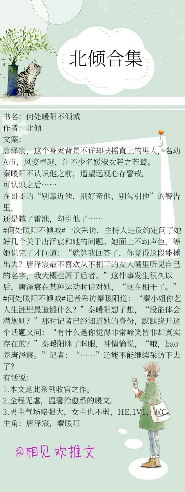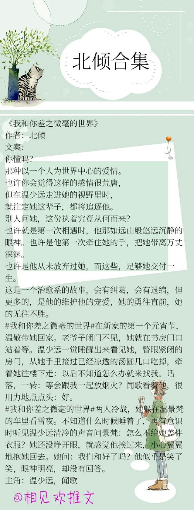 北子的文很暖很甜,陪很多人度过了很多日夜,希望北子一直写,陪我们一辈子。