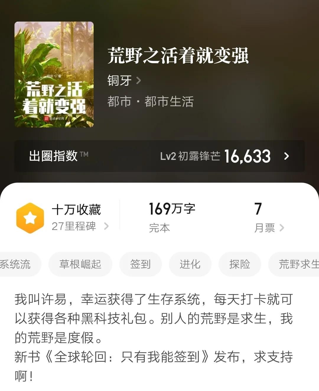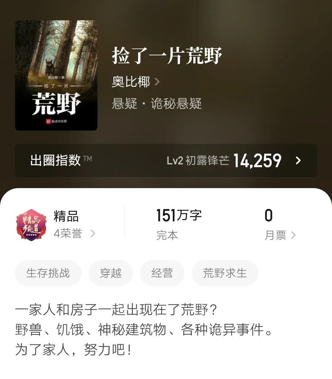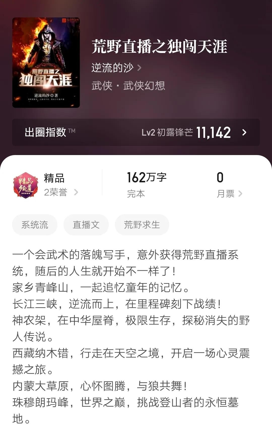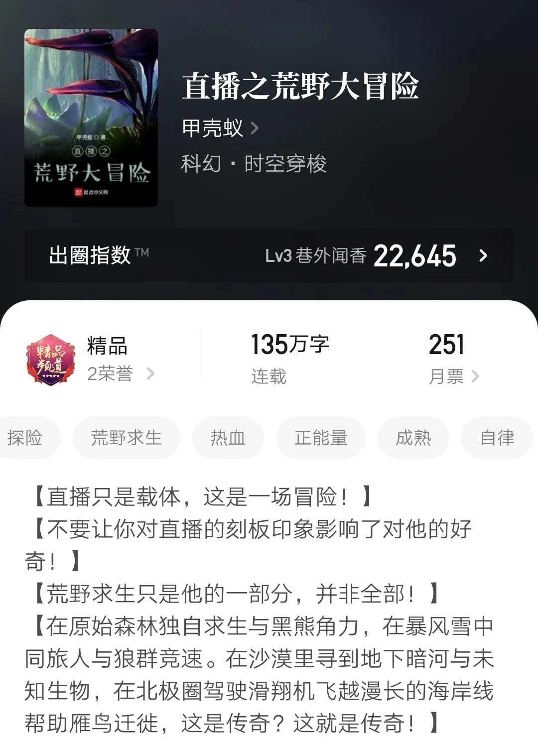 这是我最近在看的直播类荒野求生小说,连载的作品。