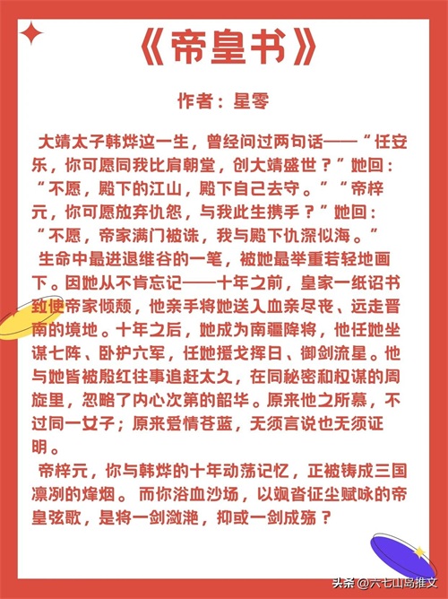 这是一本朝堂权谋古言文,女主家族本是与男主家族共创盛世的开国功臣,却因为叛国通敌的罪名被满门抄斩,只留下了女主这唯一的血脉禁锢在泰山十年,后续女主以土匪的身份招安于朝廷便遇到了男主。