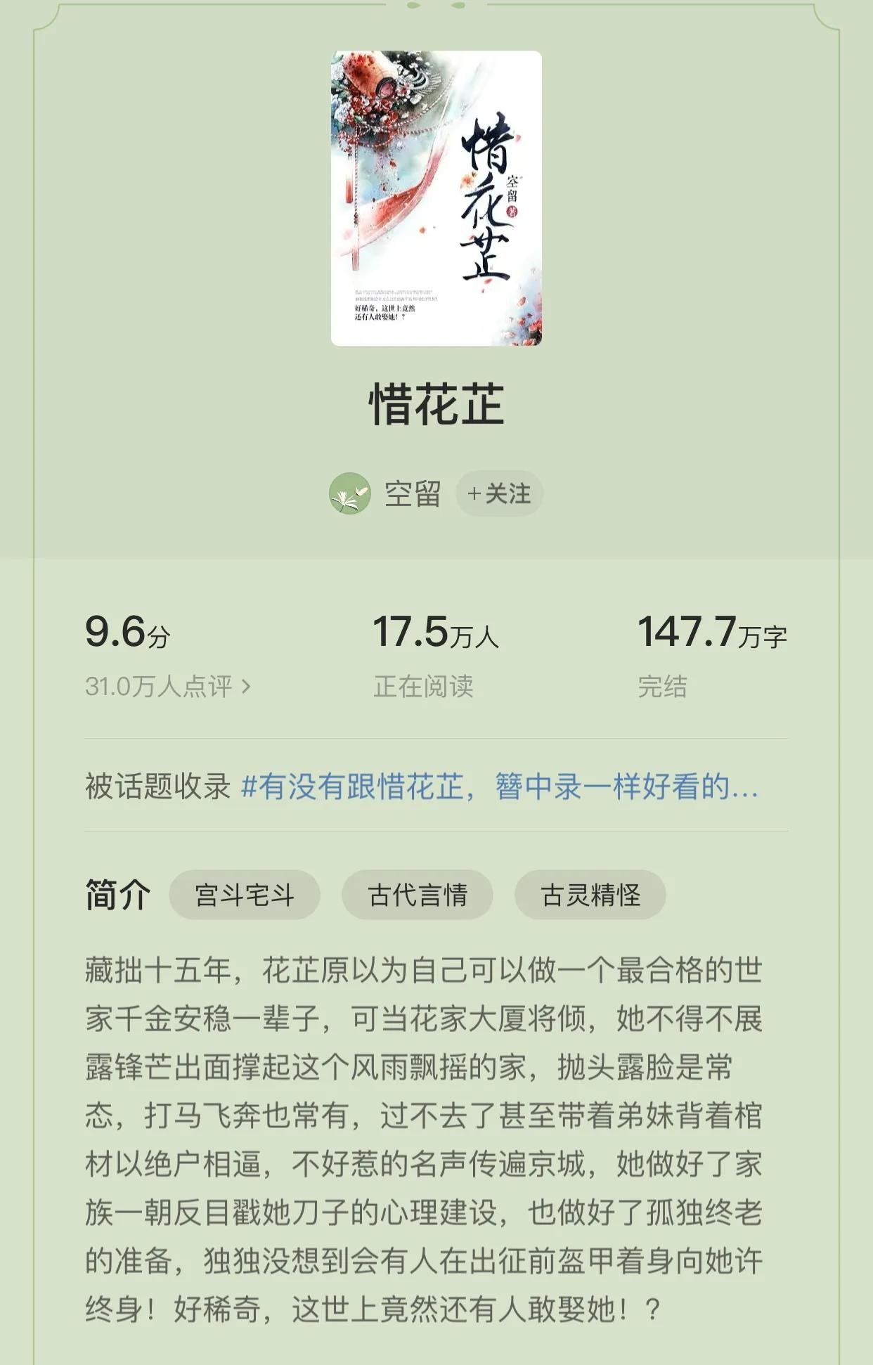 3.《惜花芷》 作者:空留