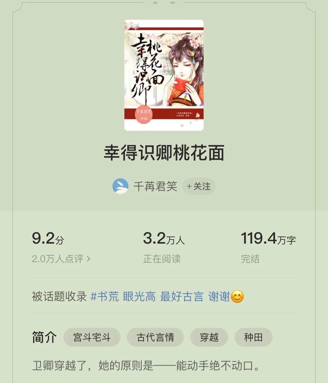 5.《幸得识卿桃花面》 作者:千苒君笑