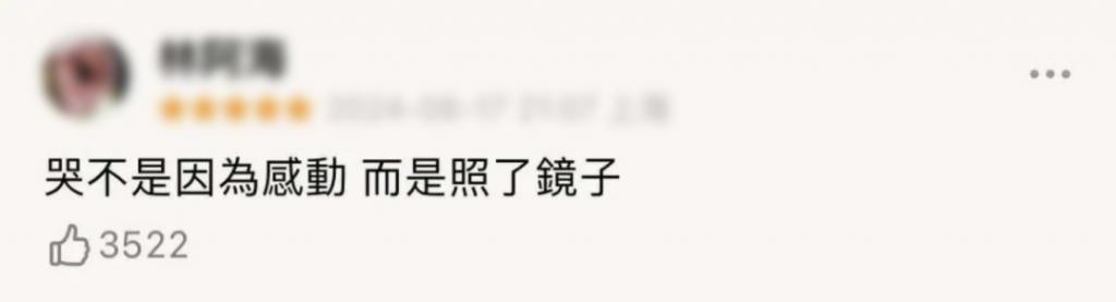 豆瓣点赞最多的评论之一,说 " 哭不是因为感动,而是照了镜子。"