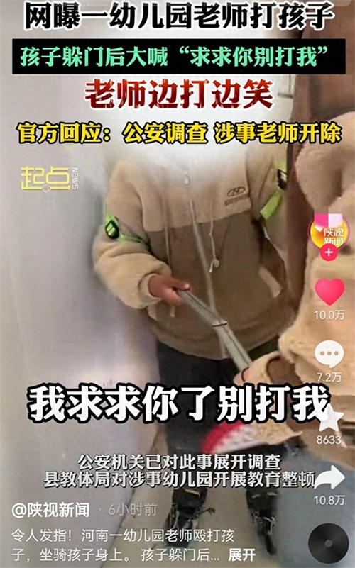 河南幼师疯狂虐童,恶劣行径人神共愤, 男童哭喊:求求你了别打我