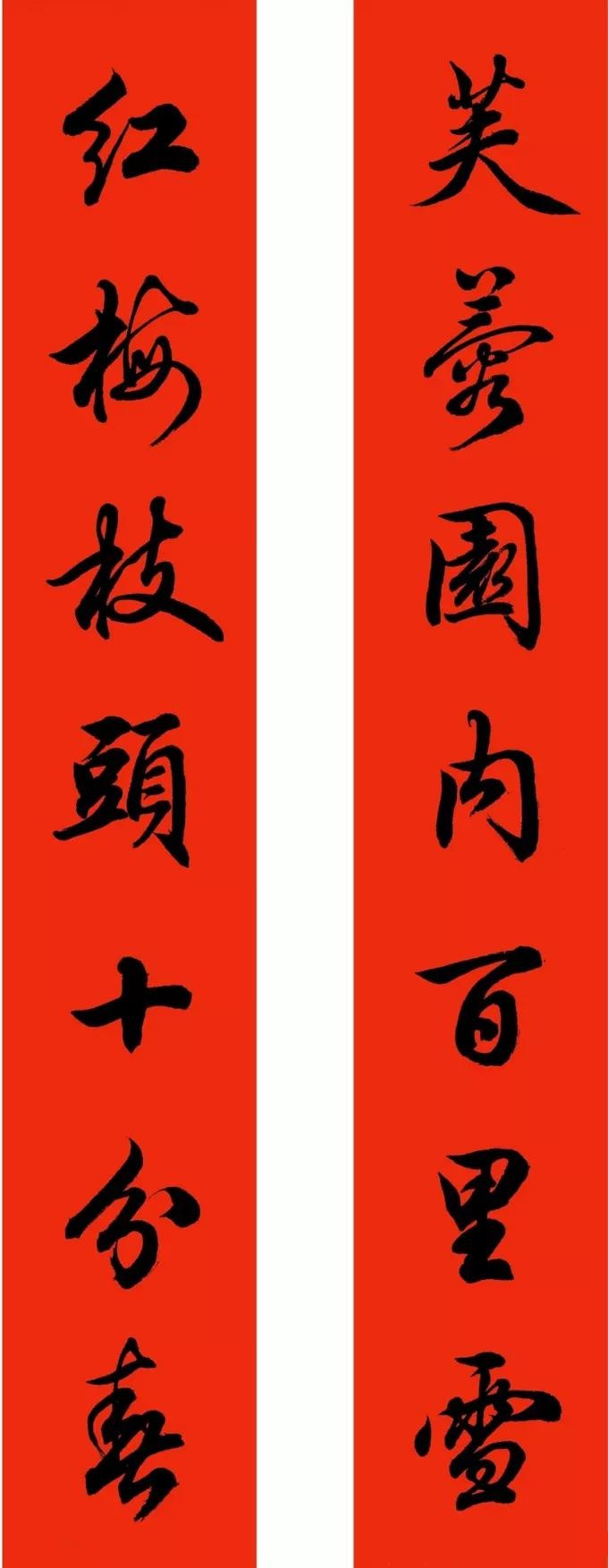 众所周知,田英章老师擅长楷书,以其独到的楷书形式,名震书坛,被网友们称之为“田楷”,而这些春联,却一改常态,没有使用他最为擅长的楷书书写,而且采用了行书的形式书写,整体上,给人的感觉更加洒脱,更加从容,更加有姿态之美,不少网友看到后,纷纷说道“没曾想他的行书竟然如此惊艳,颠覆了我们的审美和认识”,是的,他的行书,真是很别致,尤其是在洒脱度上,更加放得开,收的住,让人眼前一亮,相信这样的行书春联,你一定会喜欢的,不是吗?