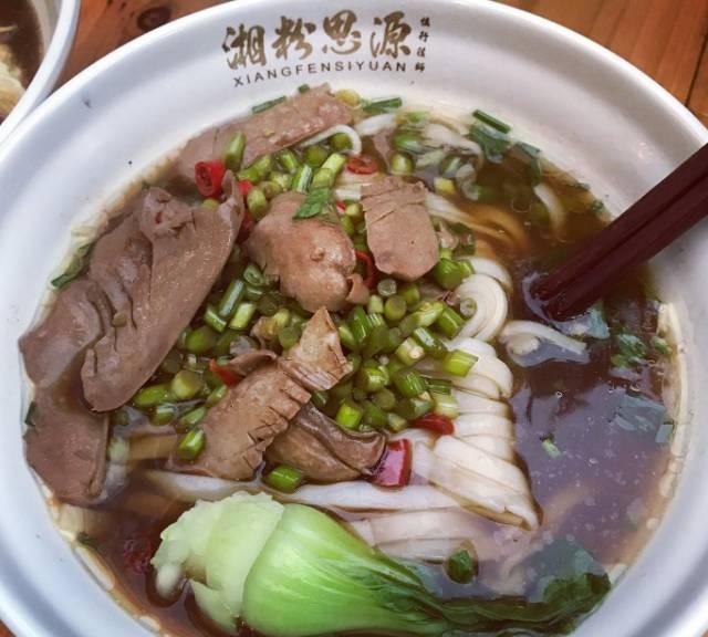 上过芒果台的明星栏目,是长沙夜市的招牌之一,在长沙米粉江湖也算有一席之地啦。他家最主打的腰花粉,上面一层红油,看着就有食欲。粉里的腰花特别嫩,没有异味,汤味道很浓郁,再加上特有的辣椒,确实是美味!!!
