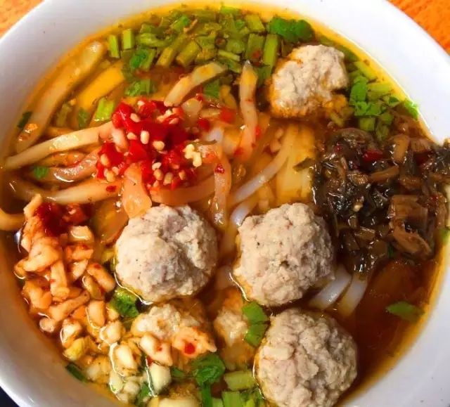 这家店的汤头实在太赞了,正儿八经的肉汤味道浓浓!米粉全是手工制作,闻上去有一股猪油的香味,粉里有肉丝和青菜,可以自己在调料区加调料和小菜,味道原汁原味!