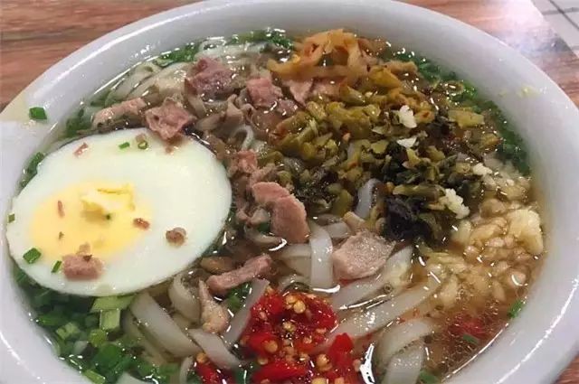 怀化米粉,以安江及洪江一带的干挑粉最好吃。上过各种节目的鸭子粉,你试过了吗?重口味的鸭子粉,又油又辣的,拌上酸萝卜和葱后没有那么腥。