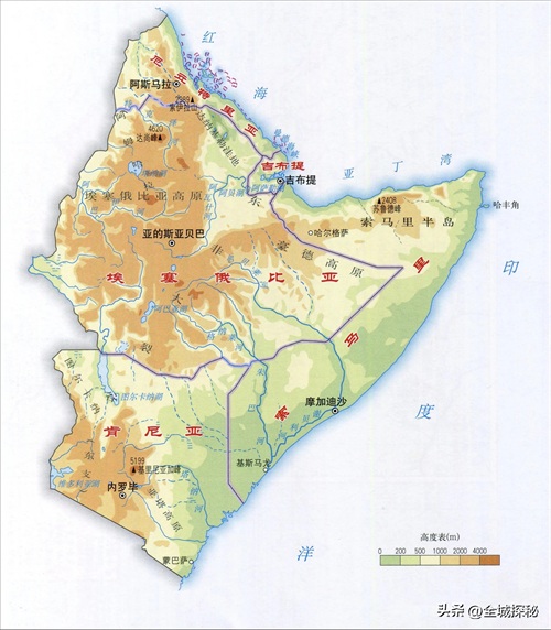 埃塞俄比亚高原海拔,褐色越深海拔越高