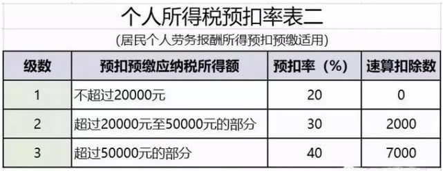 3、个人所得税预扣率有预扣率表一和预扣率表二、以及20%的预扣率。如下图: