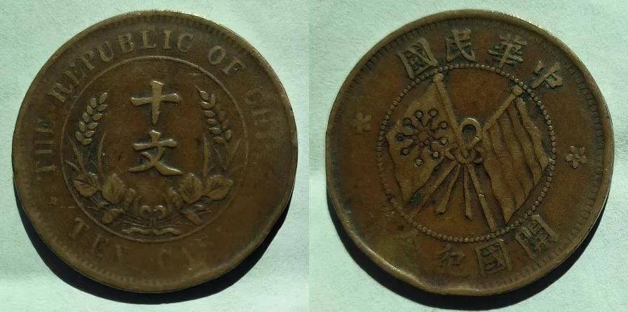 历经岁月洗礼的中华民国双旗开国纪念币十文,如今价值早已翻数倍