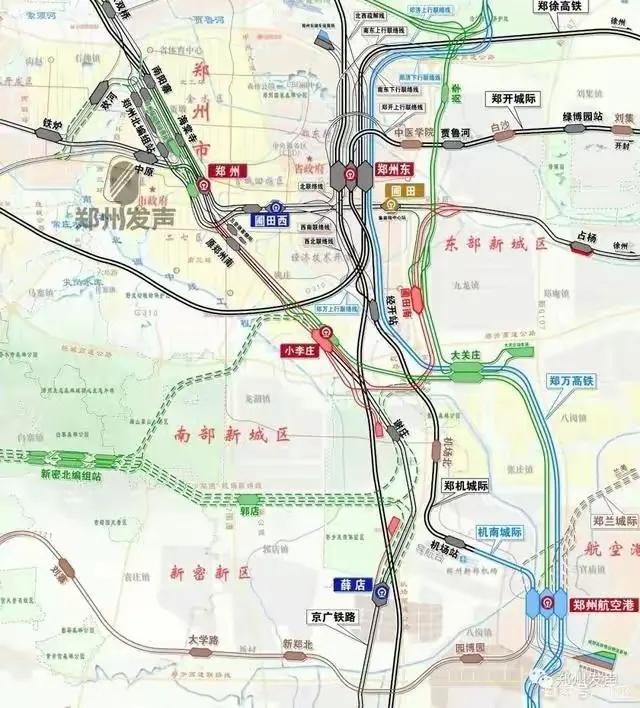 事实是,郑州枢纽布局非常合理,三大客运站之间的联系便捷,分工明确,新线路接入条件好,互通性做得的确很好。郑州东站、郑州站、航空港站(南站)之间全部实现了有效互通,各司其职,发挥了彼此的功能作用。看看郑州东站和郑州站间的场站设计和联络图,安排得如此繁复细致,令人目不暇接。