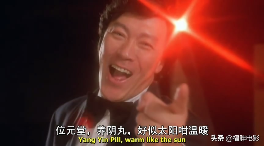 二十四、相比之前的“Swatch”和“Armani”,“位元堂养阴丸”的广告更加丧心病狂了,直接插入到了何金银和大师兄的决斗中。这一段既讽刺了电视业中泛滥的广告,也缓解了紧张的气氛。“位元堂养阴丸”是香港本土老字号,可能粤语地区观众更感觉亲切吧。值得一提的是,这个广告的原版是郑少秋和李克勤,后来郑欣宜也拍了这个广告。