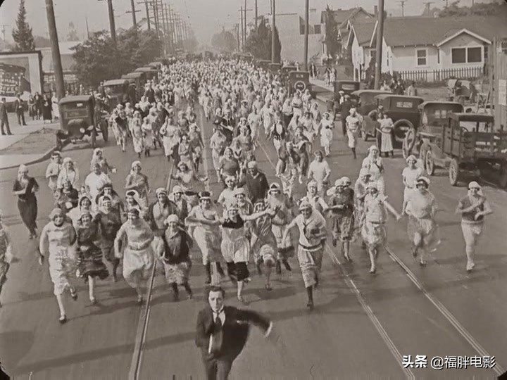 十六、阿丽被众多“加菲猫”追赶的画面,最早可以追溯到1925年巴斯特·基顿的《七次机会》。