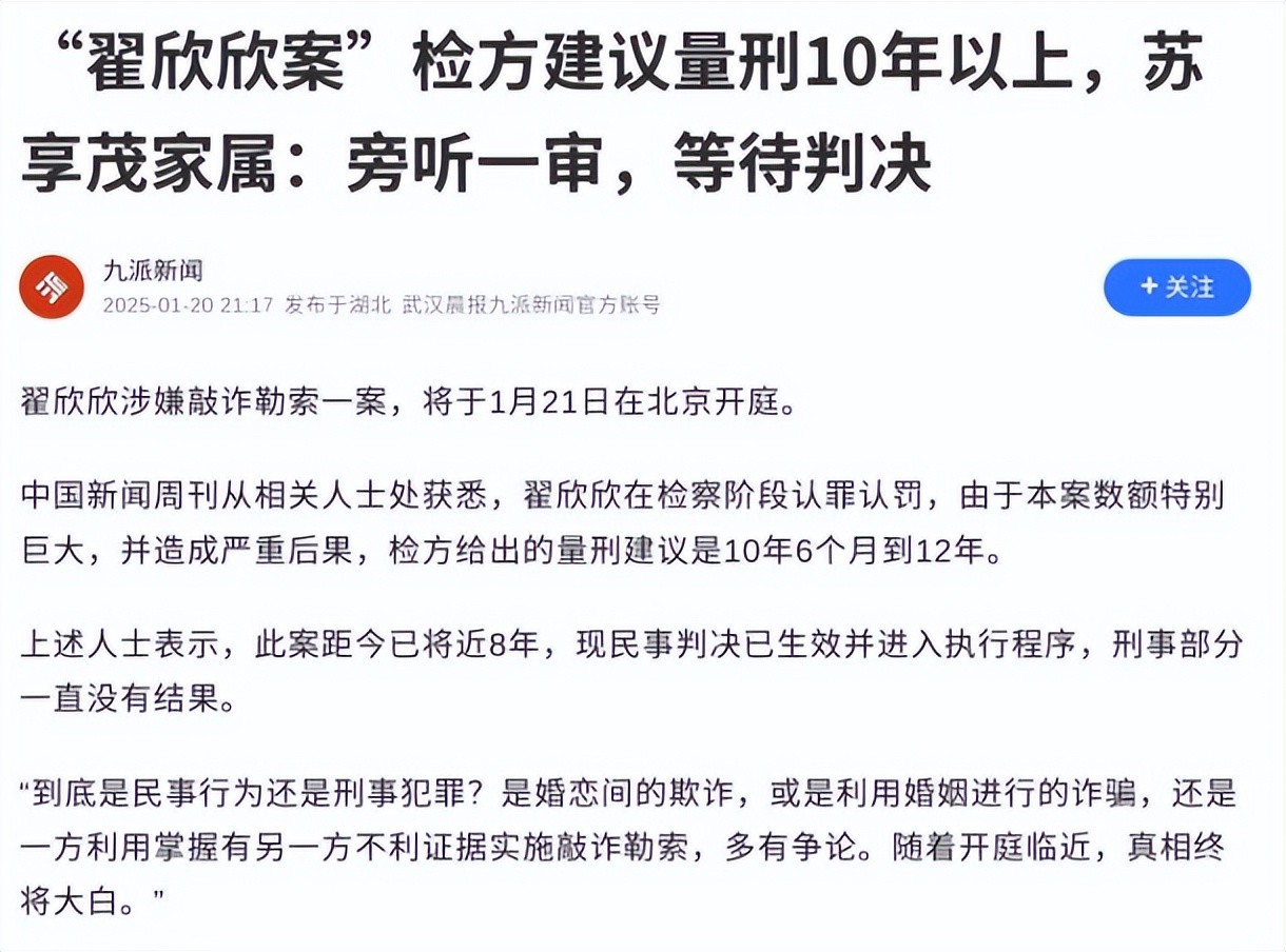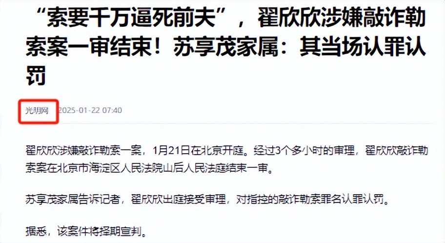 光明网——“索要千万逼死前夫”,翟欣欣涉嫌敲诈勒索案一审结束!苏享茂家属:其当场认罪认罚