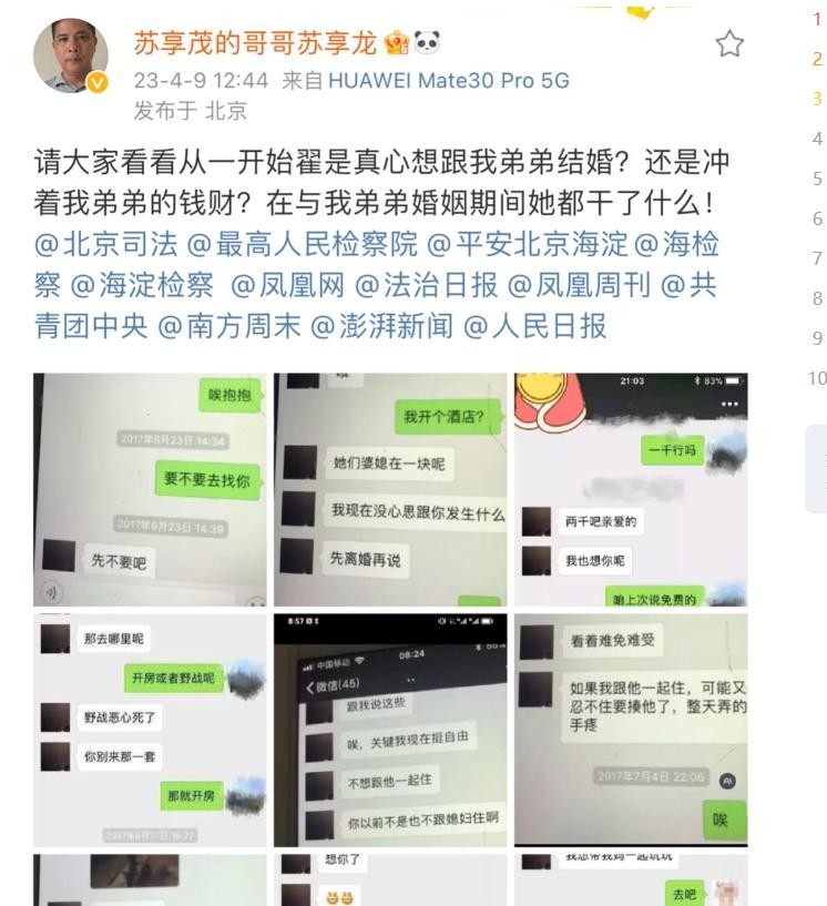 苏享茂的哥哥曾经曝光的聊天记录也重新被大家提及,翟欣欣在婚内竟然频繁约异性,并且还谈起了价格,而聊天记录也随之曝光!