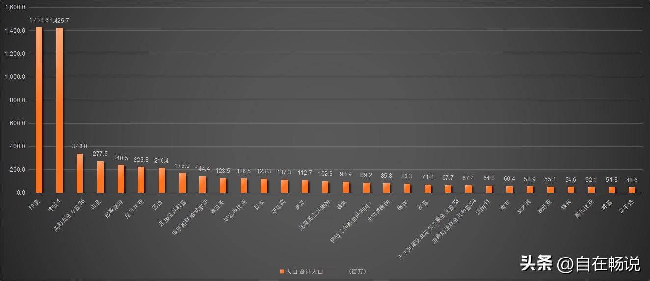 全球人口数量前三十国家或地区详细人口数据