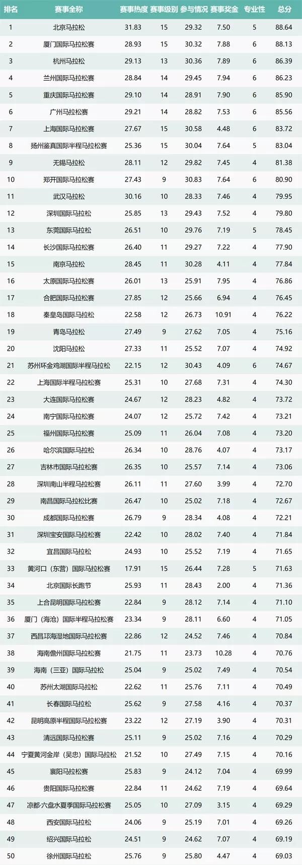 “2019最具影响力马拉松排行榜”TOP100发布,附2015-2018全排名
