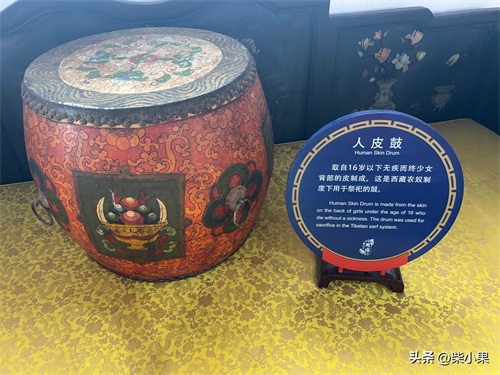还有让人脊背发凉的人皮鼓,阅读这牌子上的解说,细思极恐。