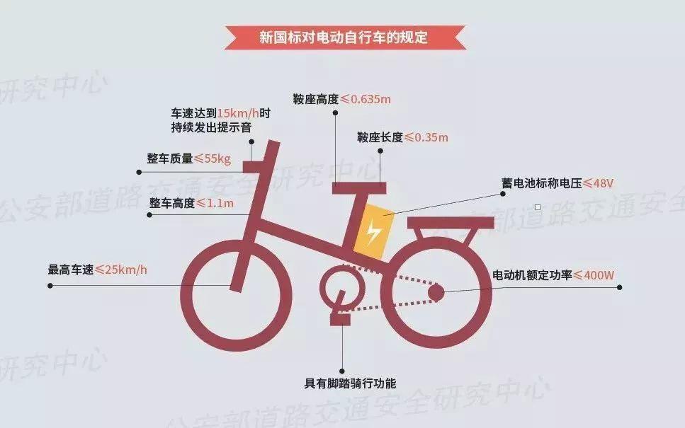 新标准中最高车速由20km/h调整为25km/h,含电池在内的整车质量由40kg调整为55kg,电机功率由240W调整为400W,提高了出行的效率。