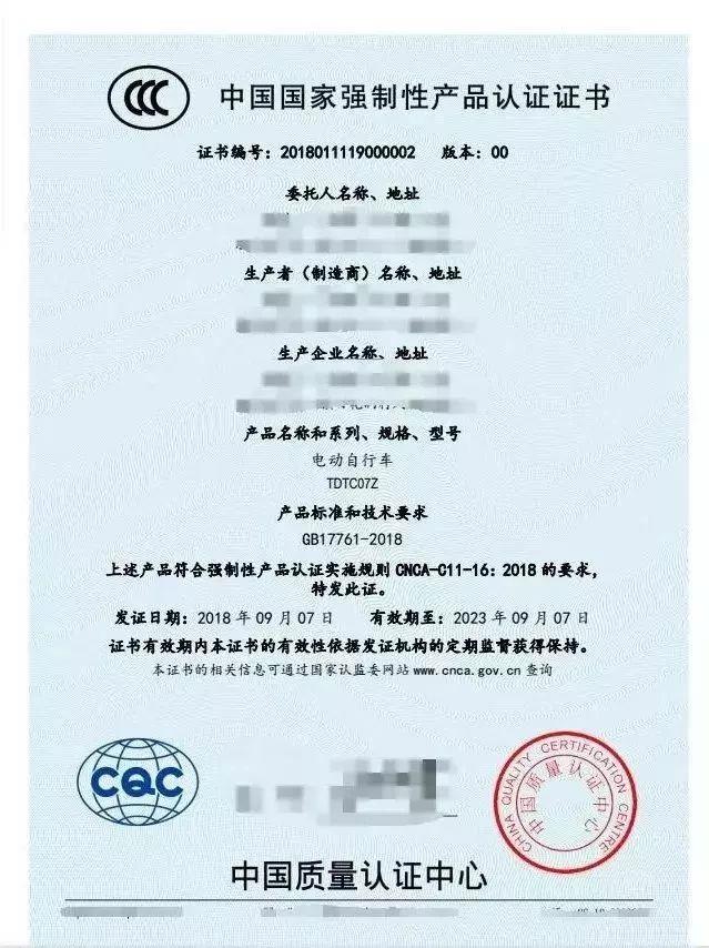 实行电动自行车销售目录或公告管理的地区,新标准正式实施后所有不符合新标准、未获CCC认证的目录车型全部作废。
