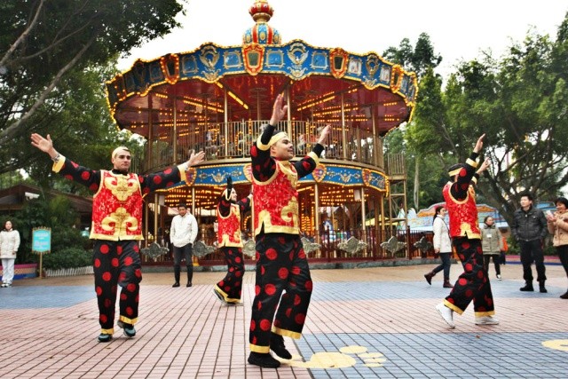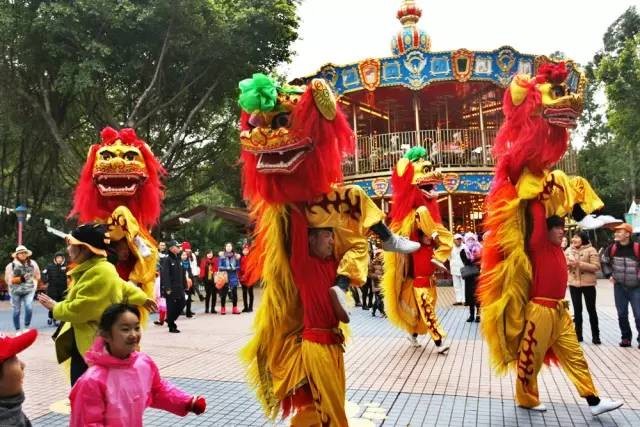 从即日起到2月22日,长隆欢乐世界每天的15:30都会有150多名中外演员组成福气满盈的超大型新春主题巡游队伍,带领南狮北狮表演从园区南门垂直过山车广场出发,与你们一起进行绕园“行大运”,共同为明天的平安和幸福虔诚祈祷祝愿,希望欢声笑语永远伴随左右。