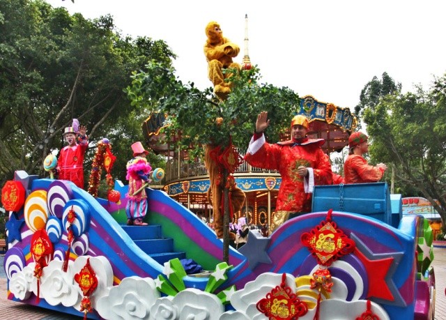 树居然会移动?!树上还有醒目的猴王?!新年气氛满满的花车祝愿你“猴”运连年!