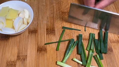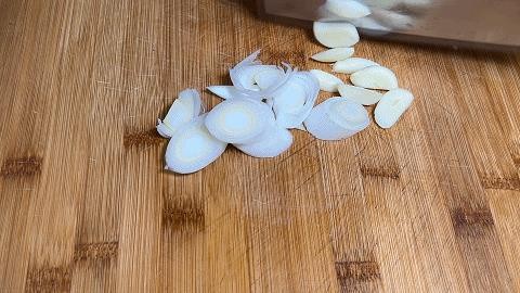 1. 大葱一段切成葱花,大蒜几粒切成蒜片,生姜一块切成姜片