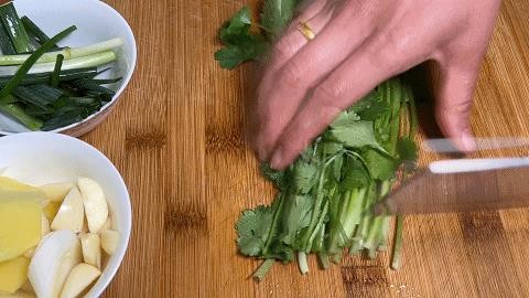 3. 香菜一把择洗干净切成长段,切完放在小碗中备用