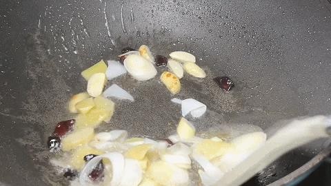 9. 起锅加入植物油,下入八角爆香,熬焦的那种,下入葱姜蒜爆香
