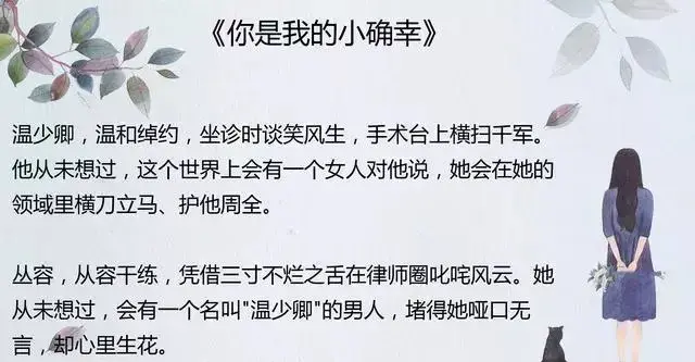 这部小说就如它的书名一样甜美,拥有你,就像拥有了人生中全部的幸运。男女主两个人当年并没有在该爱的年纪放肆爱,而是经过了几年的沉淀,尝过分离、孤独和寂寞的苦,才能品出爱情的回甘。