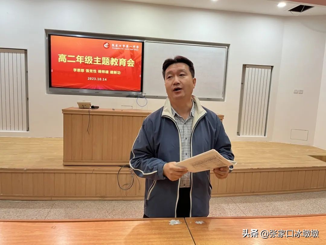 南校区高二年级召开“让奋斗成为一种习惯”主题周会,B级部主任贾硕杰主持会议。