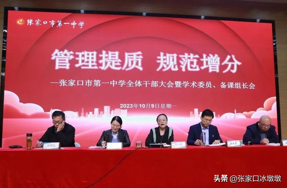 10月9日,张家口市第一中学再次召开主题为“管理提质,规范增分”的全体干部暨全体学术委员、备课组长会,再提“管理”与“规范”,明确了以科学的管理制度、规范的管理流程、有效的管理机制为教育教学提质增效路径的根本思路,强调以精心的态度和精细的过程成就“教学精品”的基本要求。