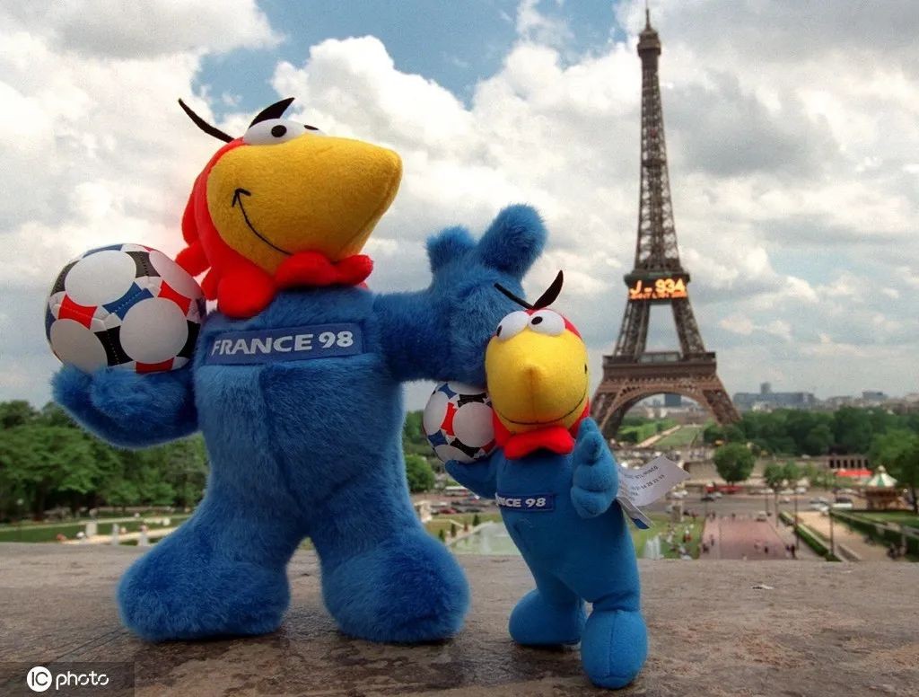 (Footix)。一只雄鸡,是法国的象征之一,胸前印有法国 98("FRANCE 98")字样。他的身体是蓝色,和国家队的球衣颜色一样,他的名字是足球和字尾"-ix"的混成词,出自著名的阿斯泰利克斯历险记漫画。他还有其他名字,包括拉菲("Raffy")、胡比("Houpi")和加历("Gallik")。