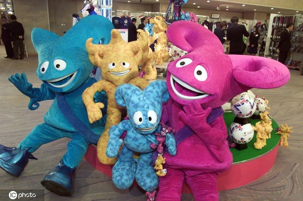 2002年韩日世界杯吉祥物:ato 、 Kaz 和 Nik。他们分别是橙色、紫色和蓝色,极未来化、电脑化的设计。他们都是Atmoball(一套讲述一种像足球的球类小说)的成员,Ato是教练,而 Kaz 和 Nik 是球员。这三个名字由互联网和主办国境内的麦当劳快餐店的用户提供的名字中挑选出来。