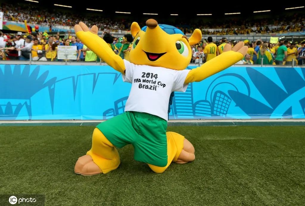 2014年巴西世界杯吉祥物:福来哥(Fuleco)。 福来哥为一只人形化的巴西三带犰狳,巴西三带犰狳是巴西特有物种。福来哥的名字是Futebol(足球)和Ecologia(生态)的混合体。