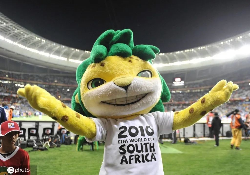 2010年南非世界杯吉祥物:扎库米(Zakumi)。扎库米是一只绿头发的大豹,穿上印有南非2010(South Africa 2010)的衣服。Zakumi的绿色和金色代表南非体育的国家队的颜色。他的名字来自“ZA”,是ISO 3166中南非的代码,而“kumi”则是多种南非语言中“十”的意思。