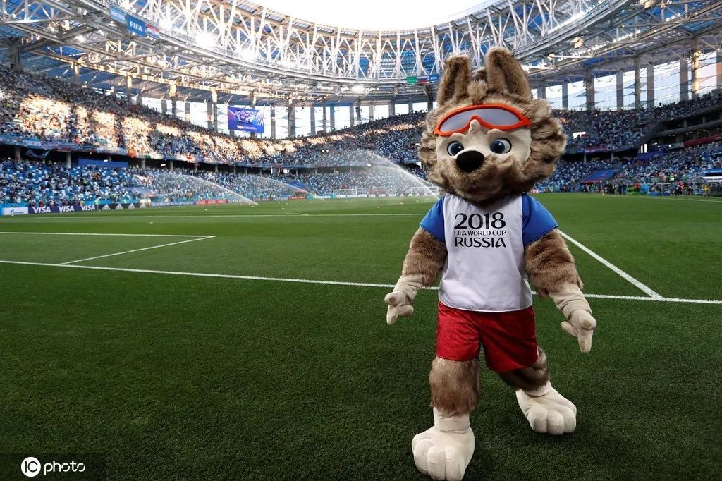 扎比瓦卡为一只卡通人形西伯利亚平原狼。名字在俄语中意为‘射手’或‘那个得分的人’;Zabivaka的毛色为白、棕相间,带着运动护目镜,衣着配色则为蓝、白、红,象征俄罗斯国旗。