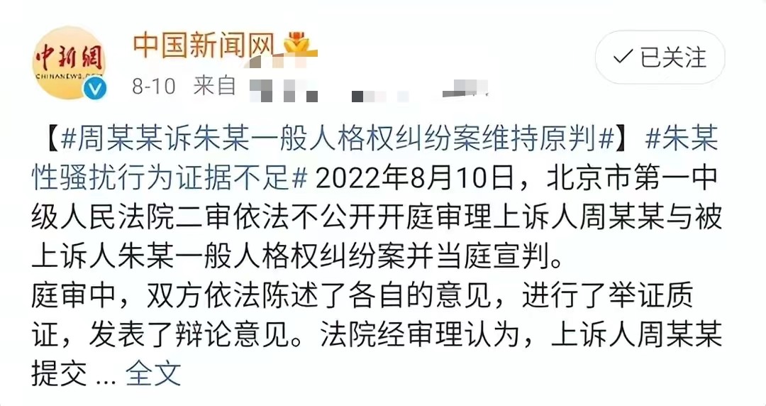2021年一审结果判定朱军无罪胜诉。败诉的弦子马上再上诉,而二审结果还是一样,
