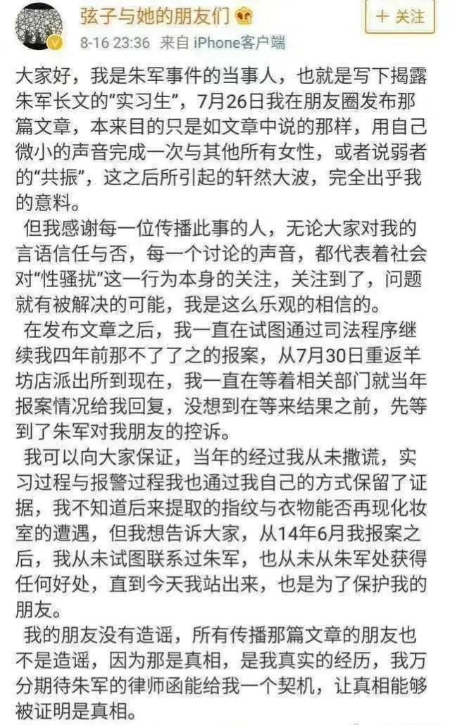 弦再一次声泪俱下地发表了一篇关于这件事的文章,有不少人相信此事斥责朱军。