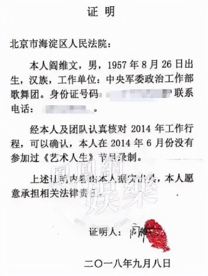 阎维文亲眼所见,但阎维文却说,他根本就没有看到弦子说的那一幕!
