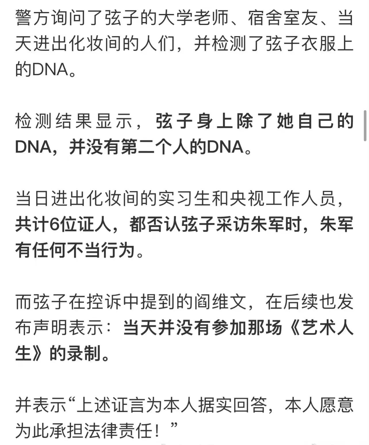 之后,警察对央视六名员工进行了问询,所有人都说,弦子在接受朱军的采访时,