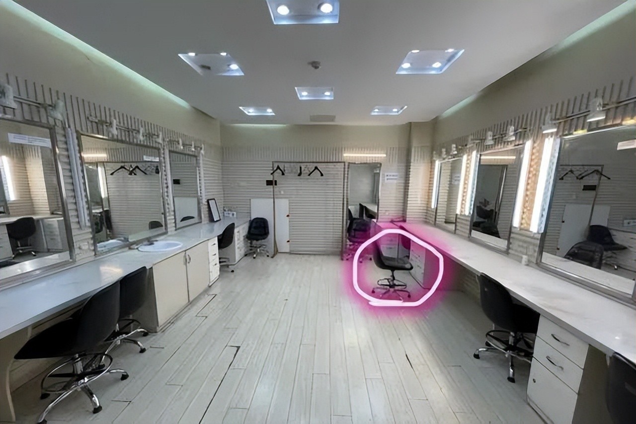 照片上,这里是央视的更衣室,人来人往,弦子说朱军在这个凳子上对她实施不轨行为:
