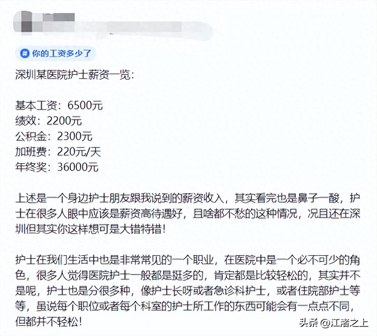 深圳某医院护士薪资被曝!月薪8700,年终奖一万六,看完鼻子一酸